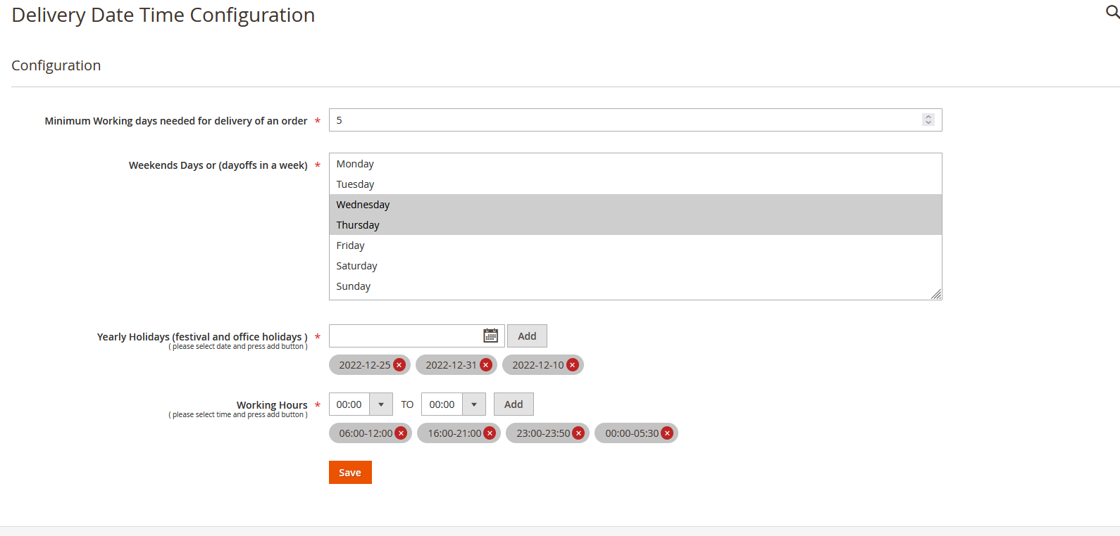 - Go to Letscms Delivery Datetime > Configuration and update settings for for delivery datetime.