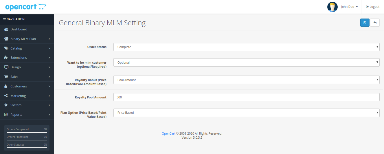 - Order Status : Select one of the order status, When order status is same as that BMP commissions and bonuses are insert by this order and also register user as Binary Level user who is join network by the checkout page.